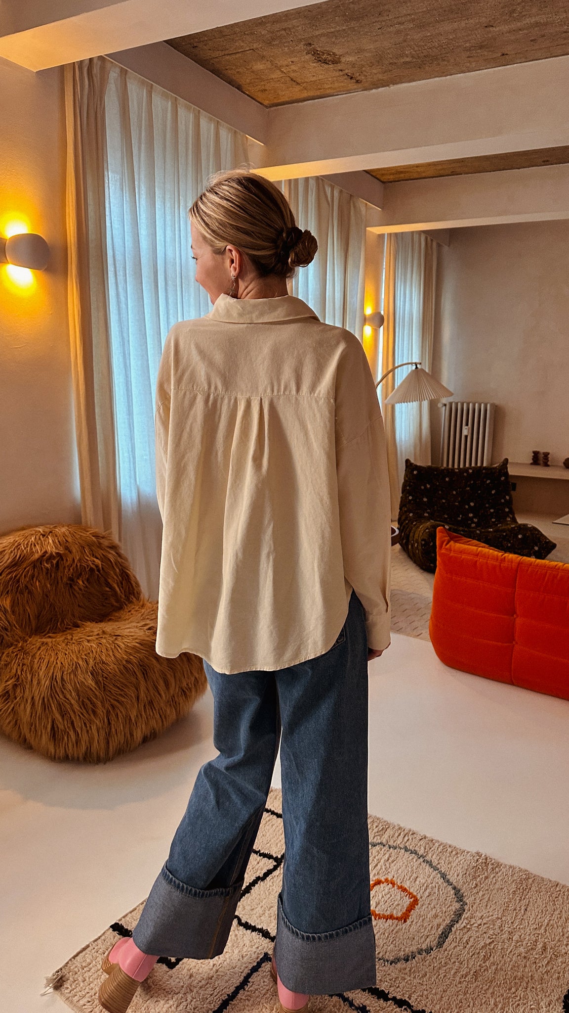 Deze beige blouse doet precies wat ’ie belooft: happy maken. De felroze “Happy”-tekst en smiley zorgen voor een frisse, vrolijke twist op een tijdloze blouse. Perfect om je dag (en outfit) meteen goed te beginnen.
