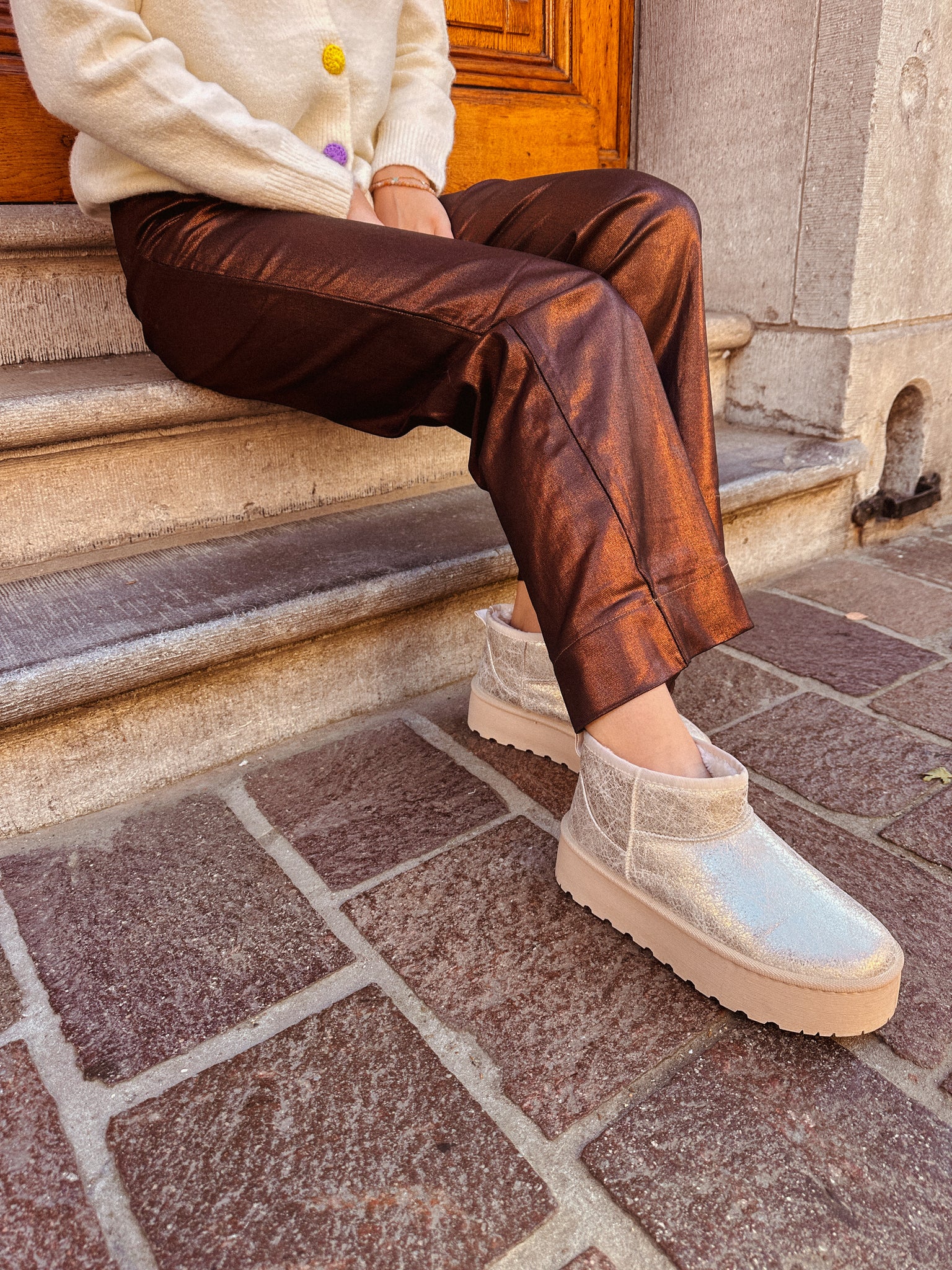 De Elira Broek Brons is een rechtlopende broek in een warme bronstint, perfect voor zowel casual als chique looks. De broek heeft twee handige zakjes vooraan en sluit dankzij de zachte stof mooi aan zonder te strak te zitten.