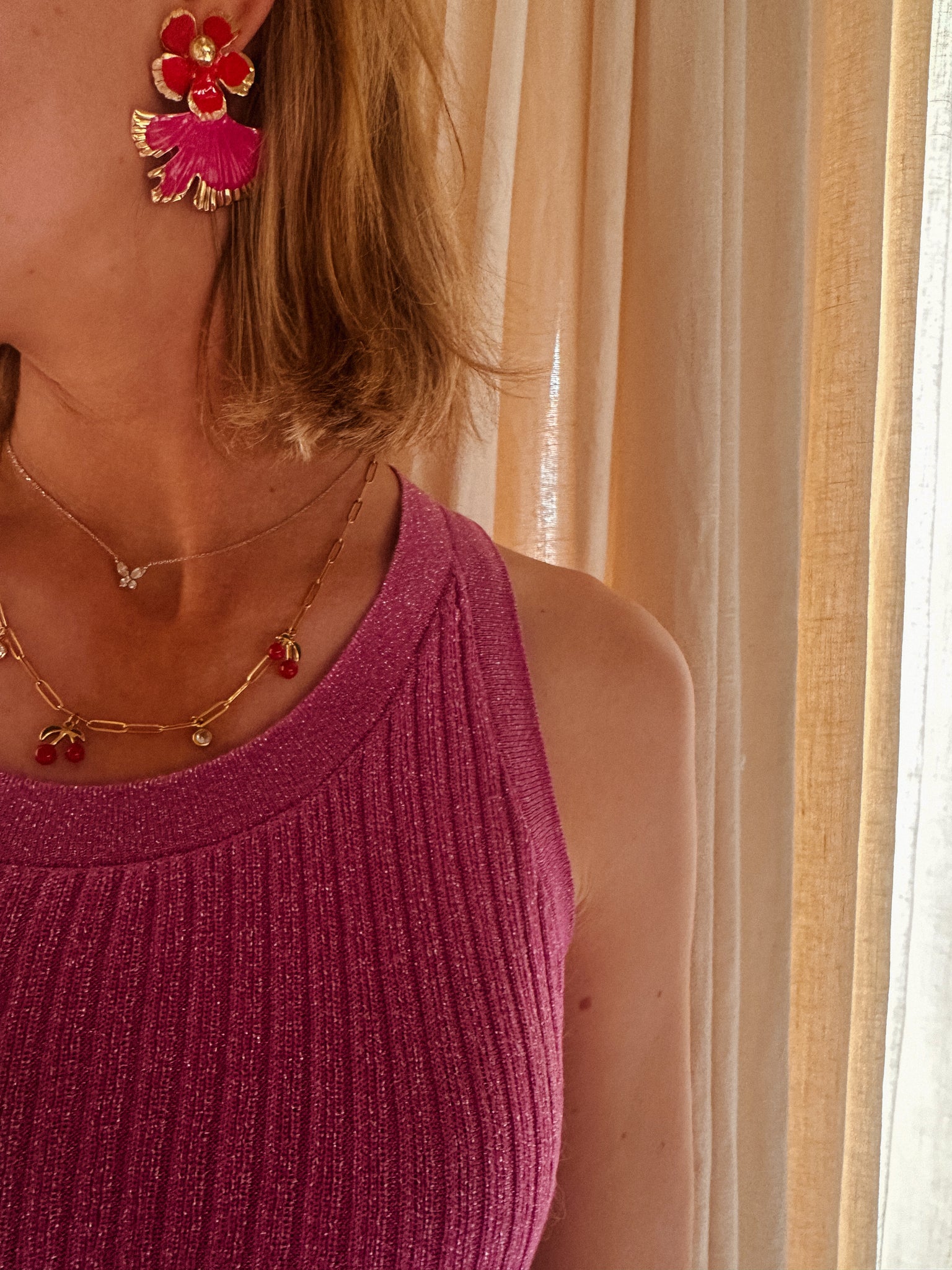 Deze ribgebreide top in fuchsia met subtiele glans is jouw nieuwe go-to voor dagen waarop je wat extra shine kunt gebruiken (en eerlijk — wanneer niet?). De stretchy fit sluit perfect aan, terwijl de glinsterende draad een vleugje main character moment toevoegt. ✨