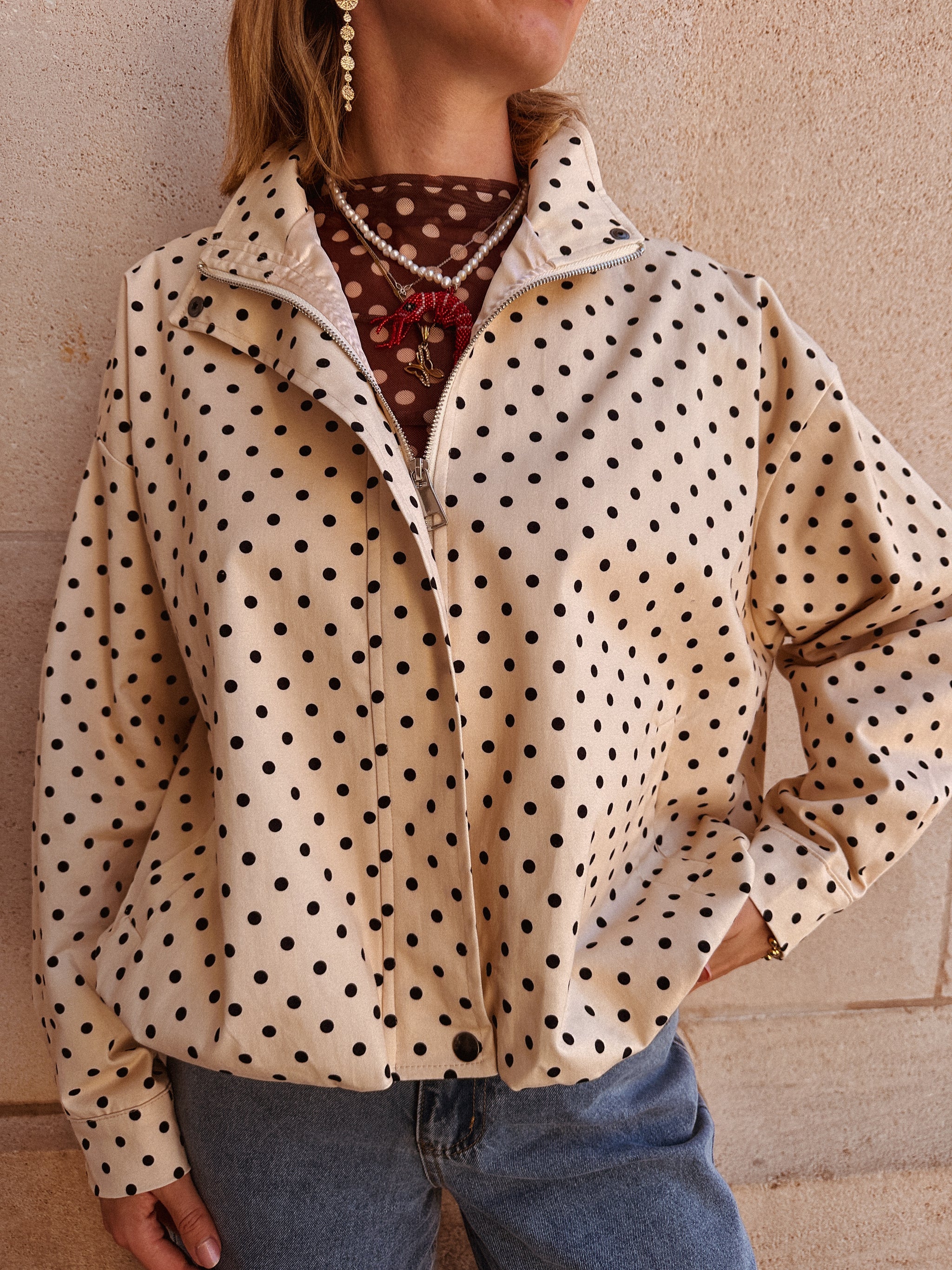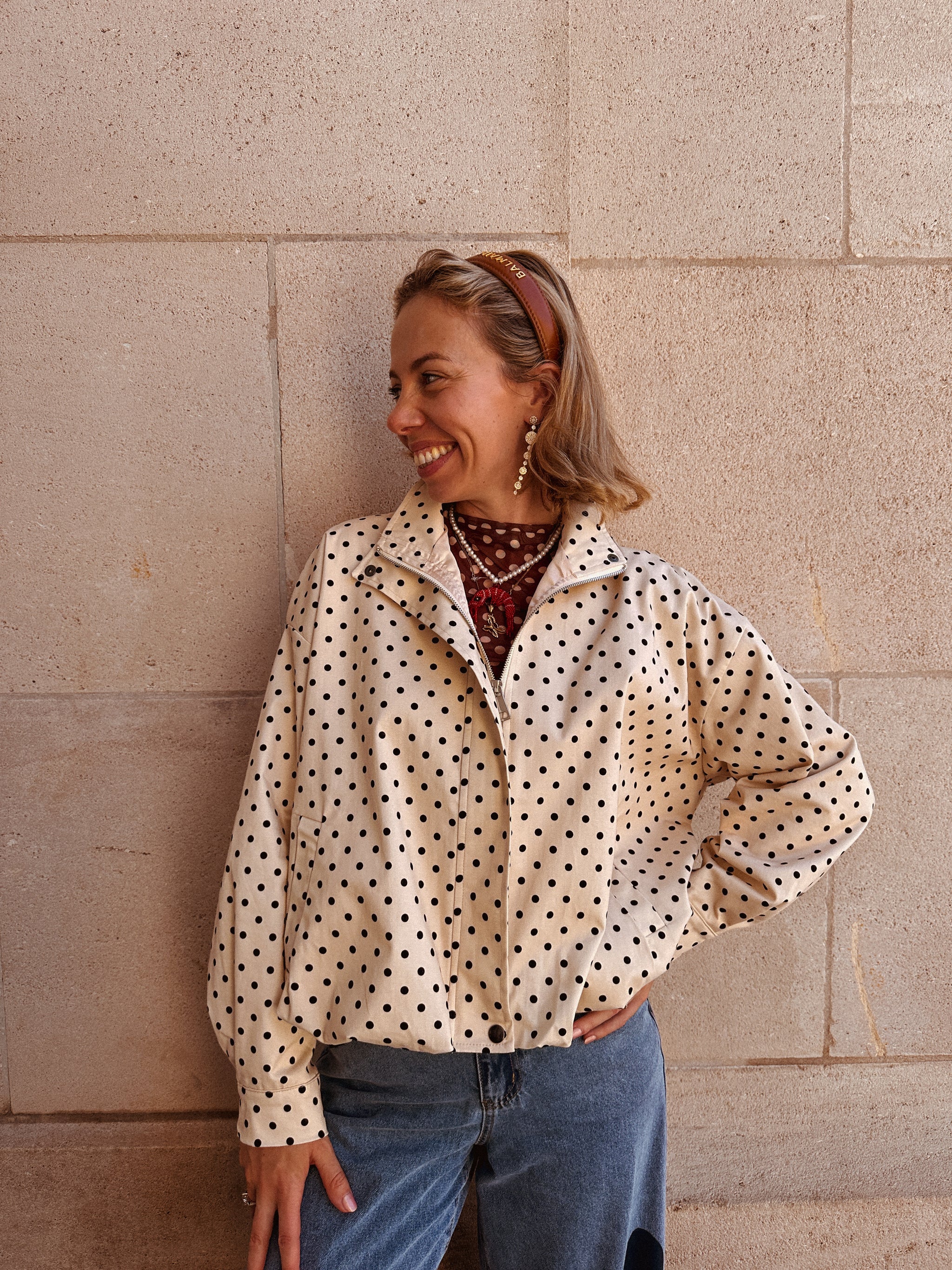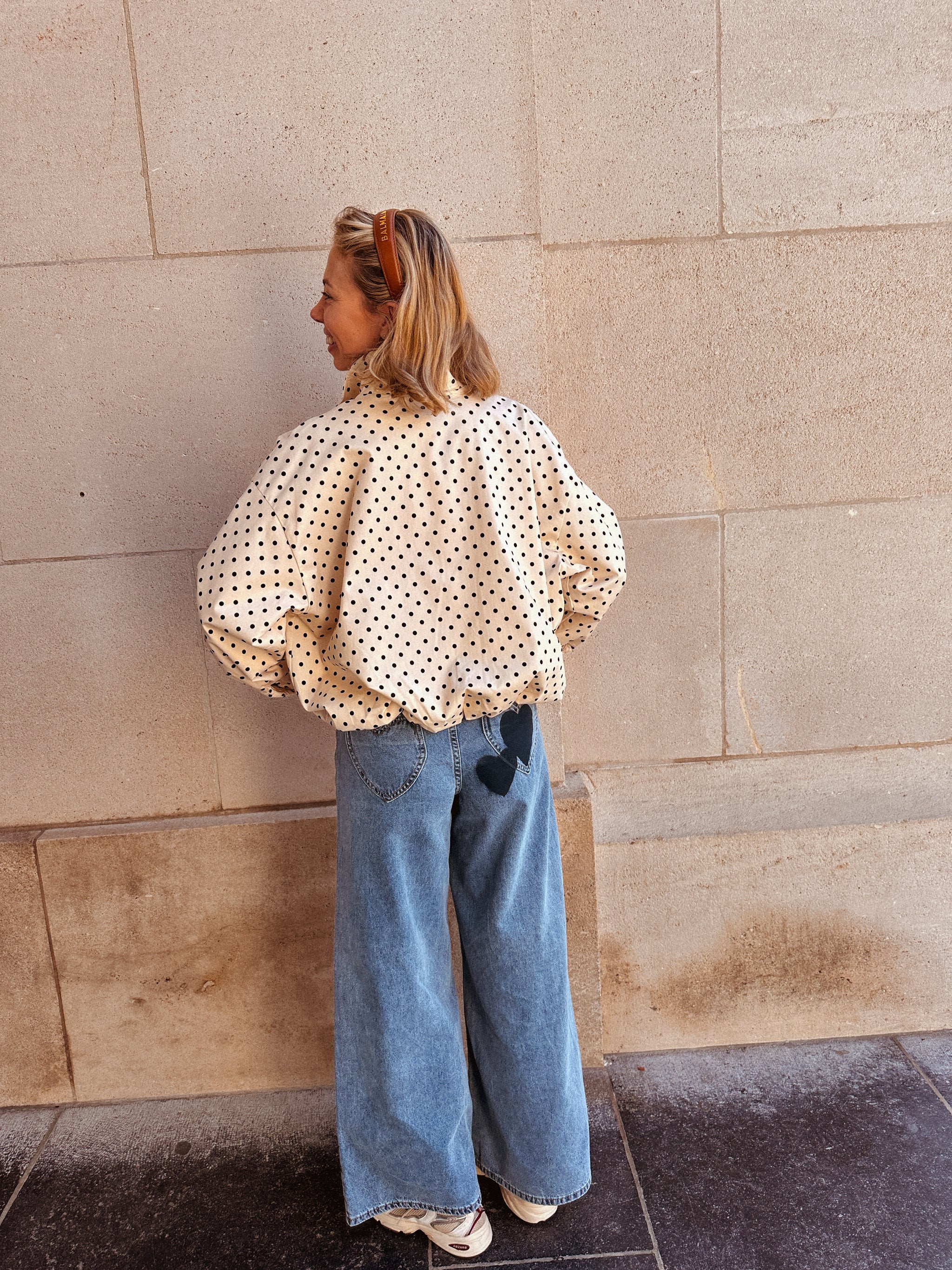 Gemaakt in een zachte ecru kleur met de populaire polka dot print — speels, maar helemaal on-trend.