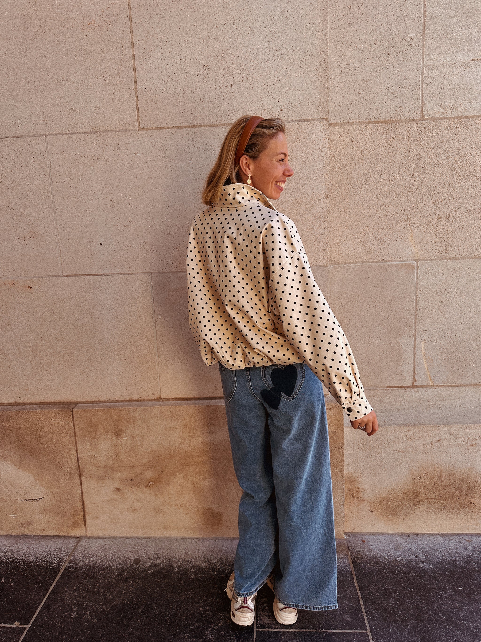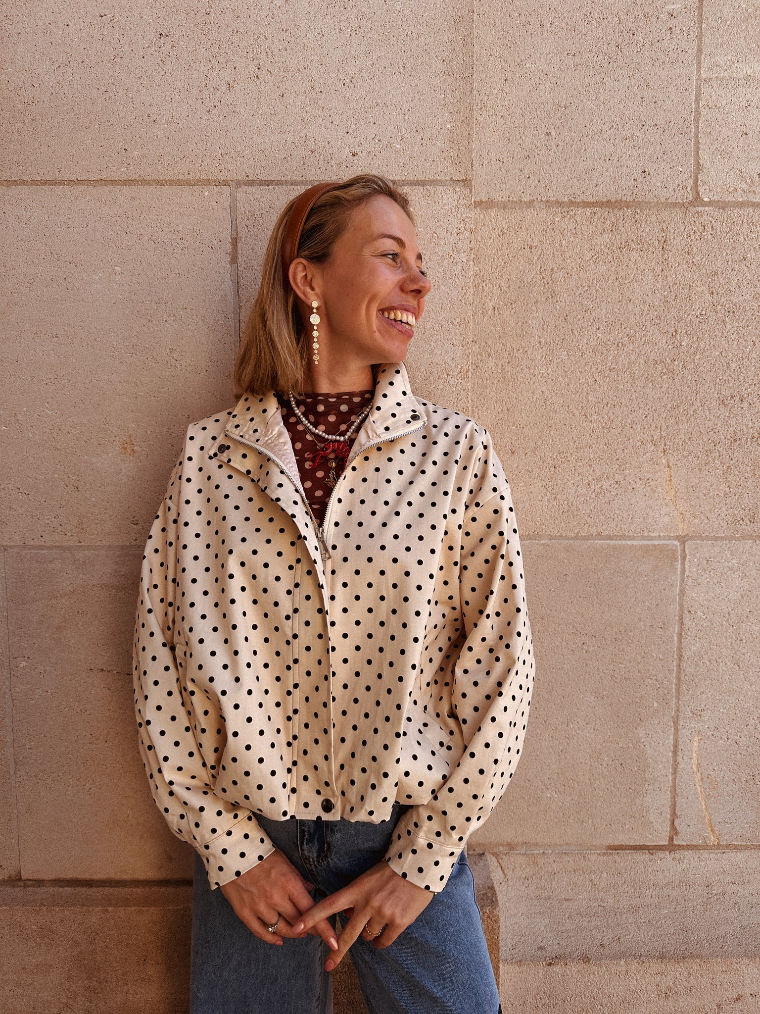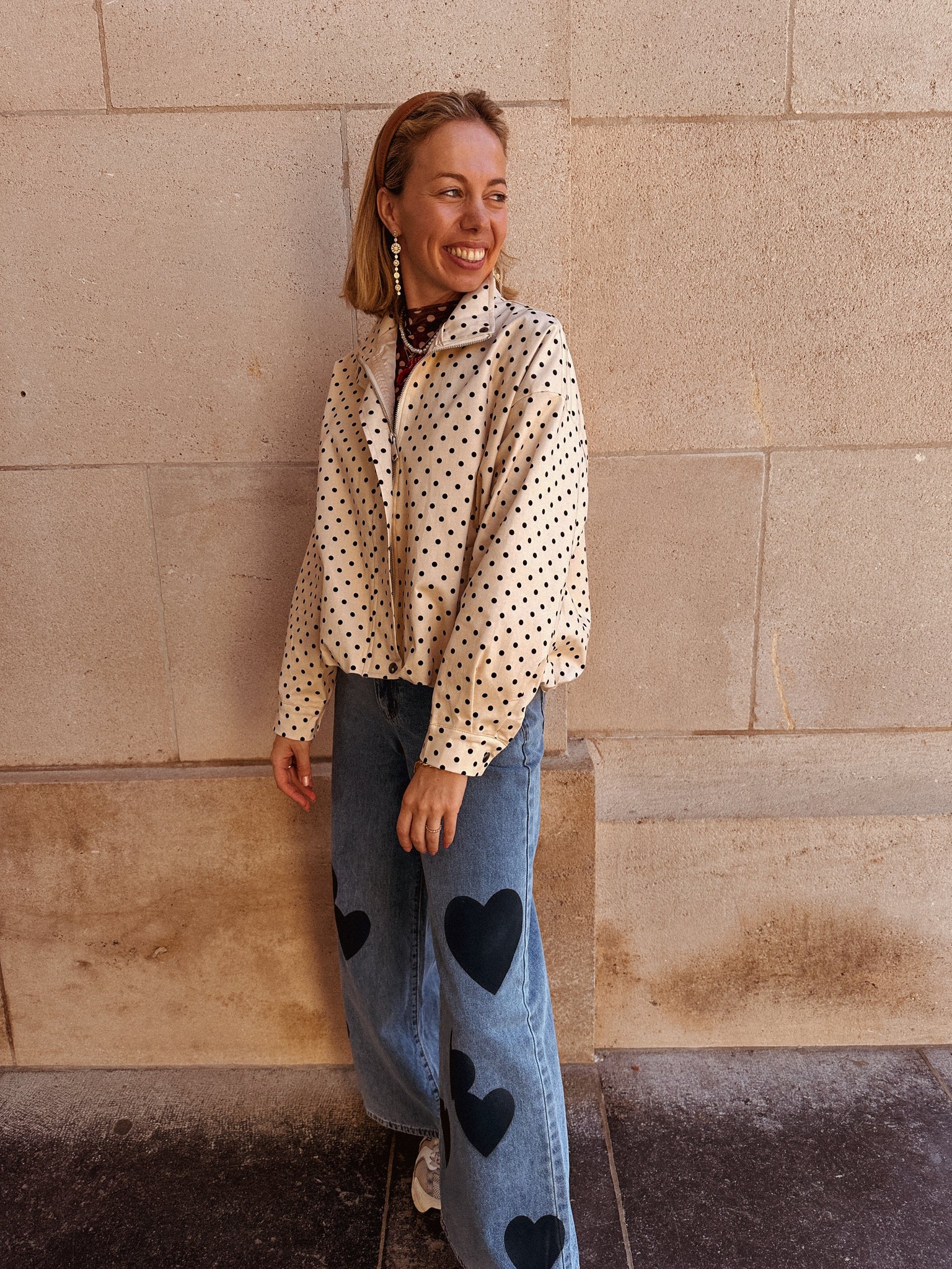 Gemaakt in een zachte ecru kleur met de populaire polka dot print — speels, maar helemaal on-trend.