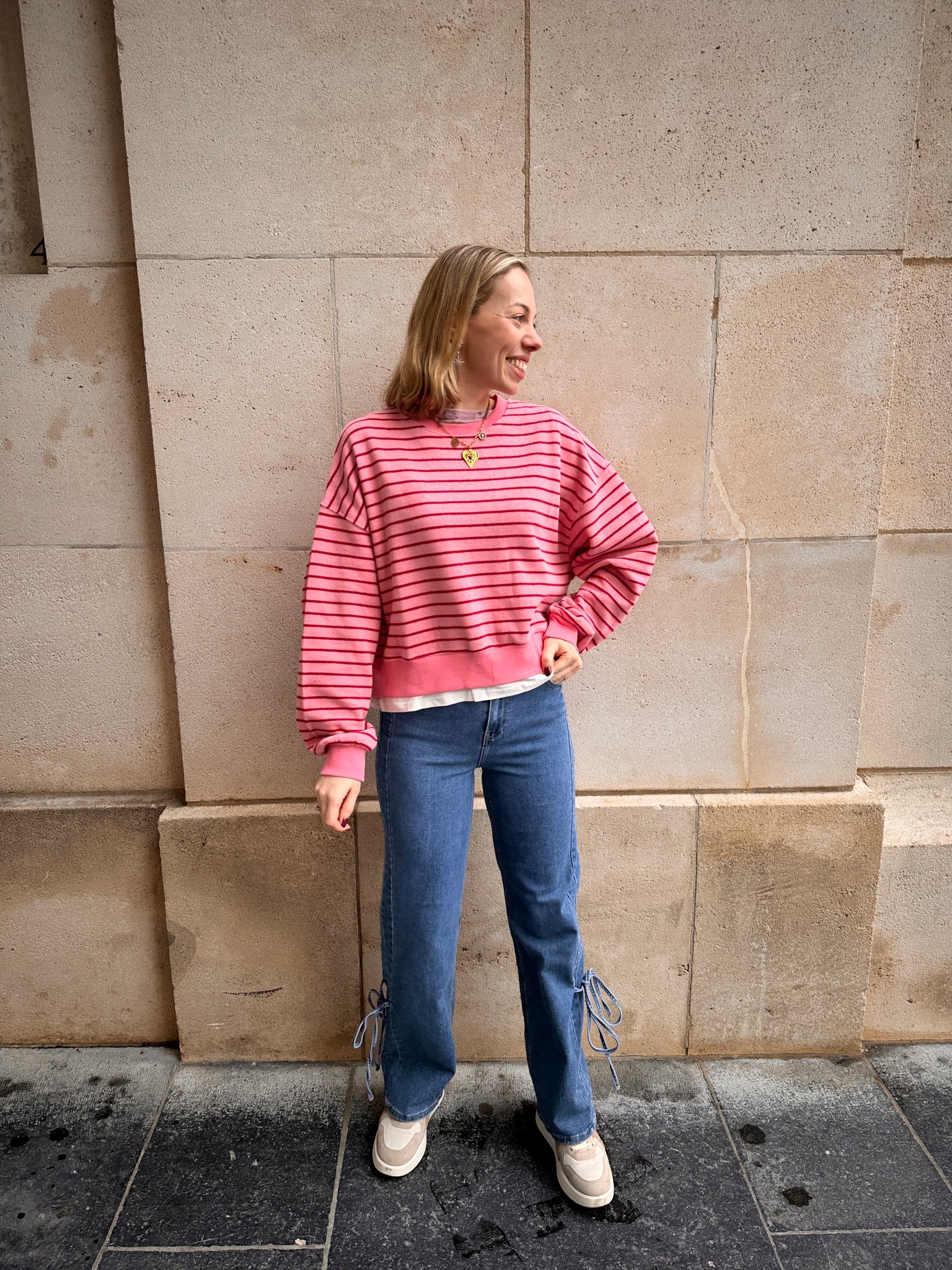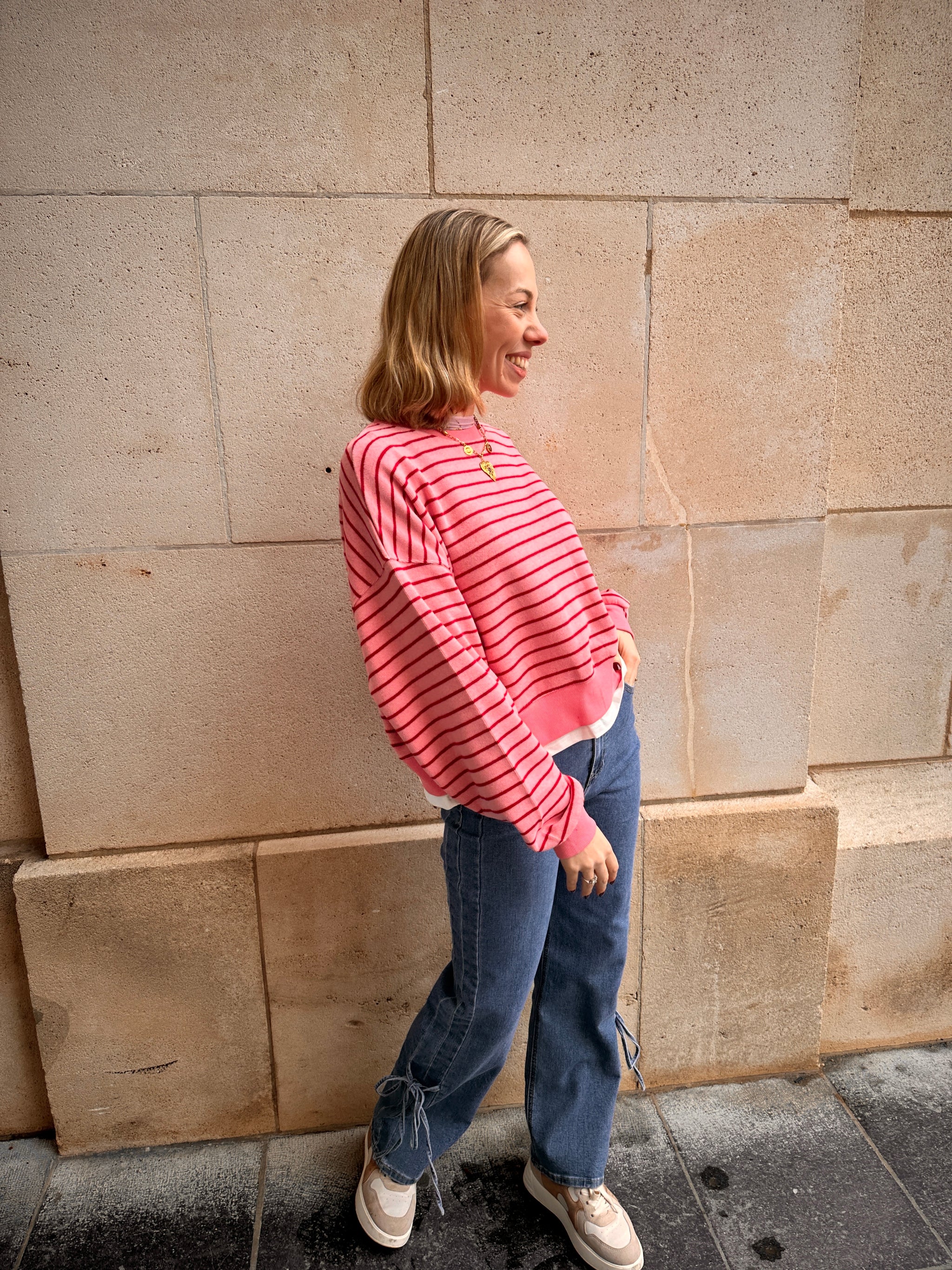 Nova trui roze gestreept