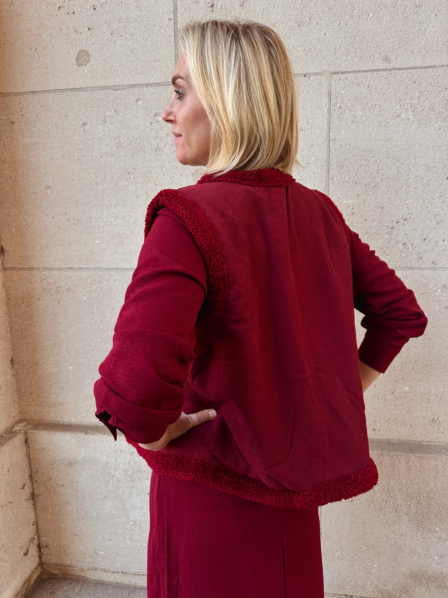 De Zaylin gilet in bordeaux is een echte blikvanger.