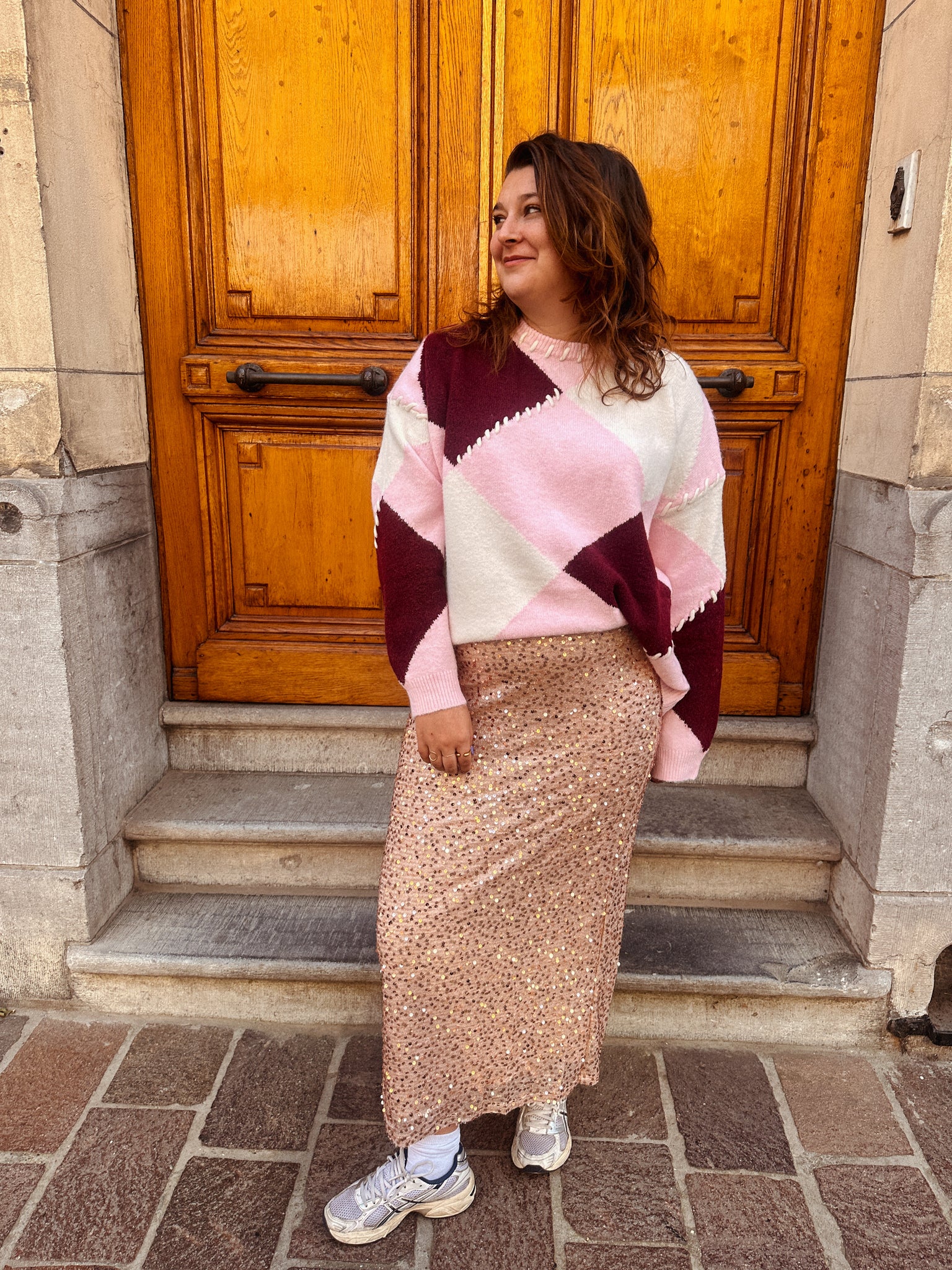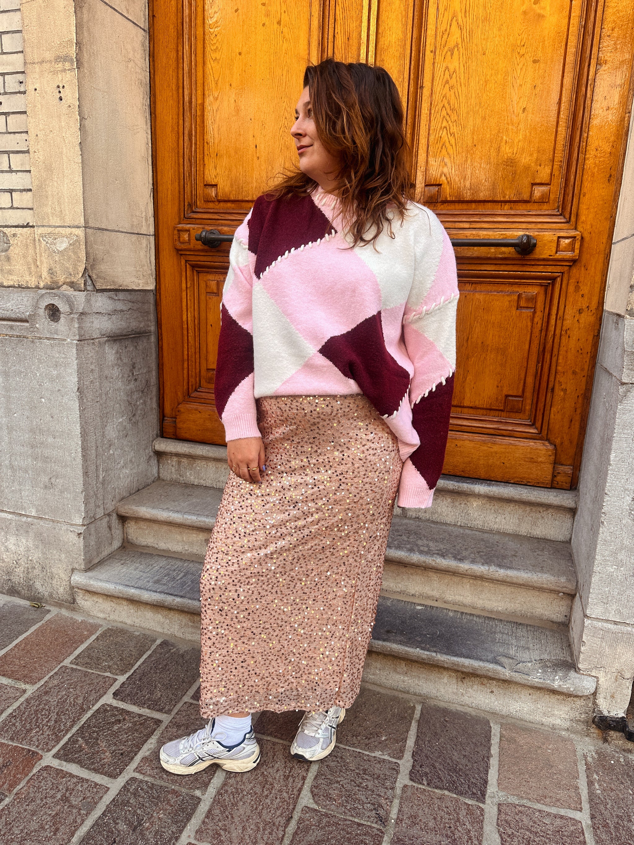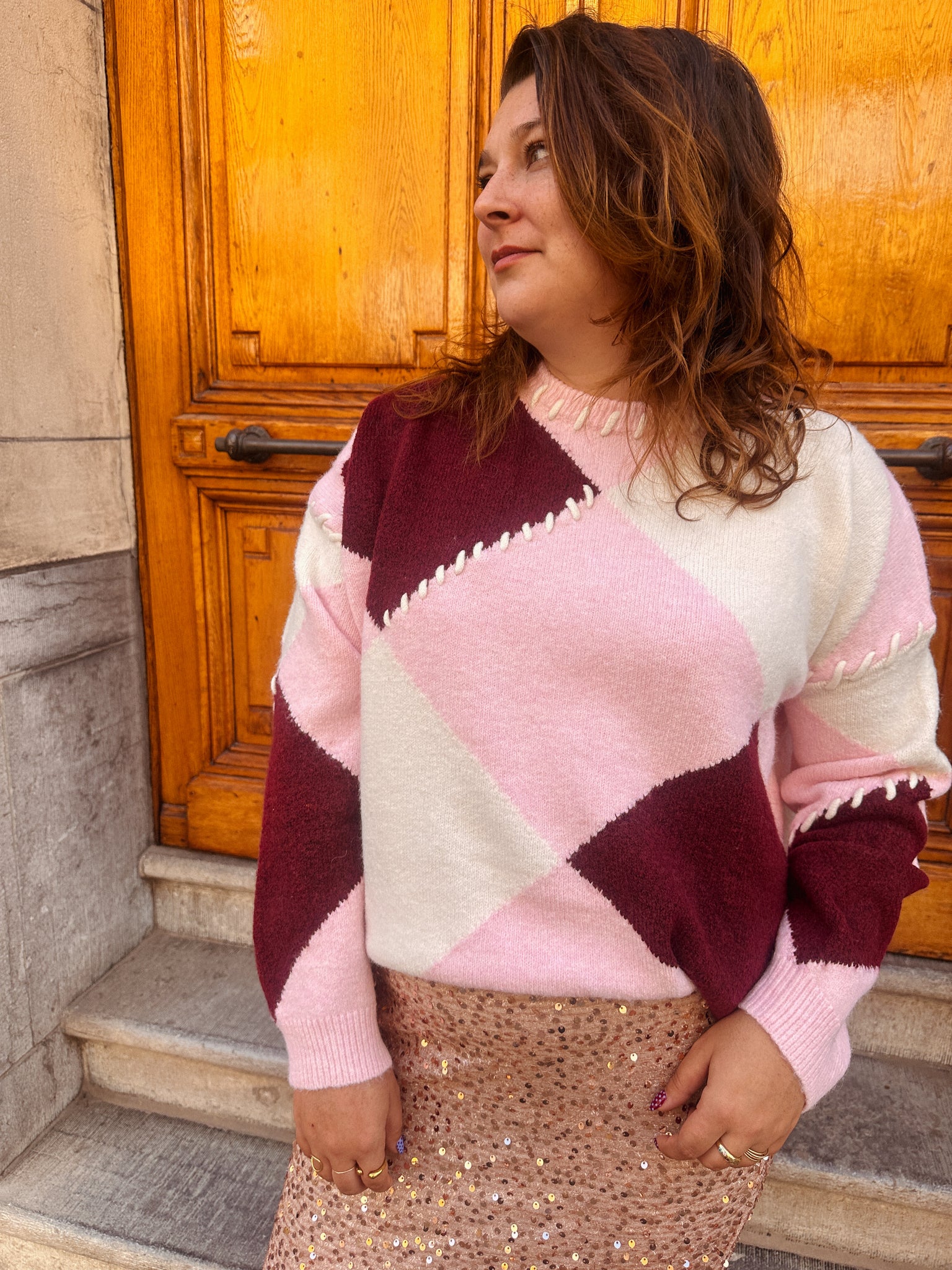 Een trui om in te wonen. De Scarlet is een oversized model in een speels geruit patroon, met een prachtige kleurencombinatie van roze en bordeaux. Gemaakt van een heerlijk zachte stof die je niet meer wilt uittrekken. Perfect op je favoriete jeans, over een rok of gewoon voor lekker thuis.