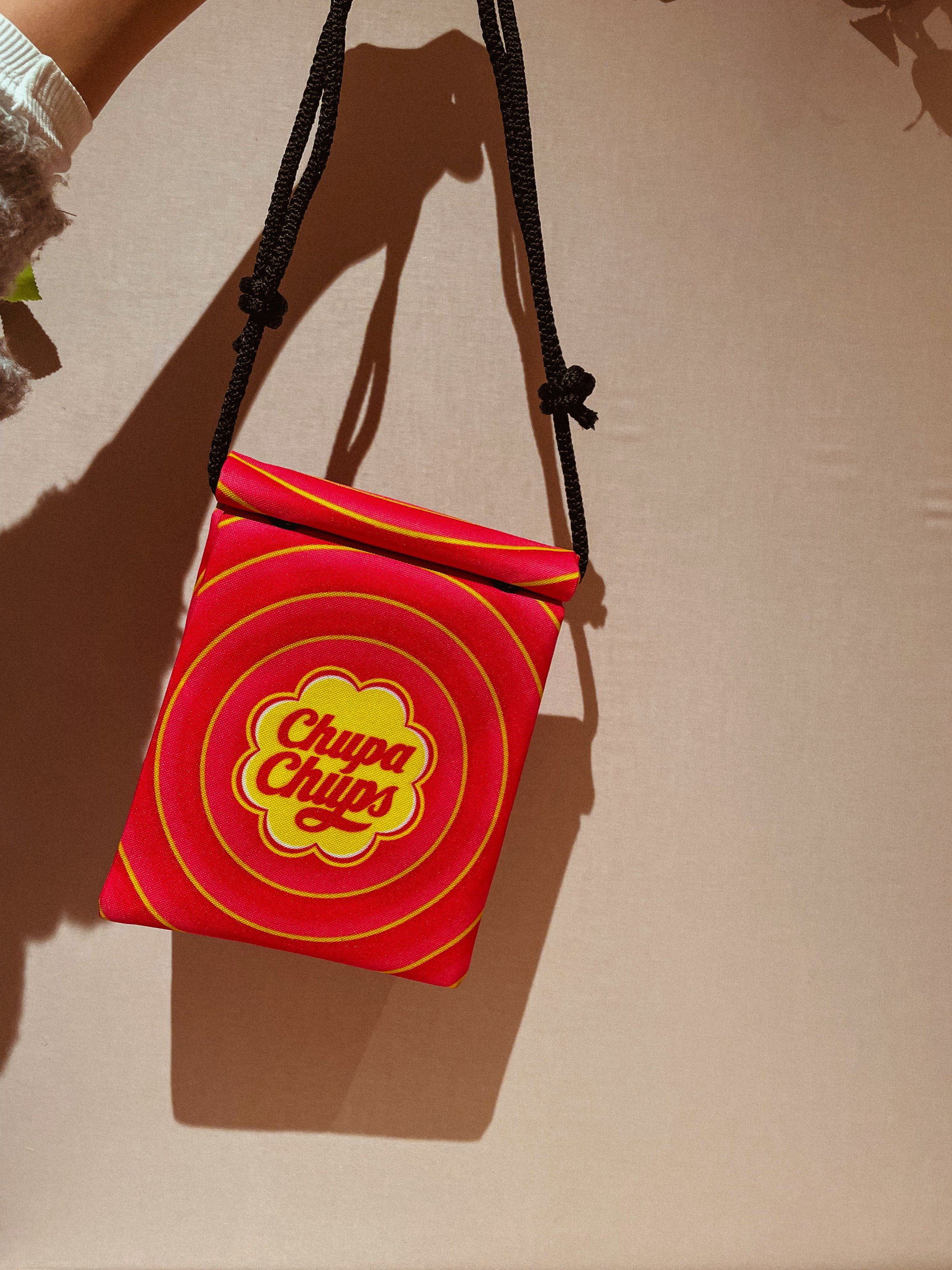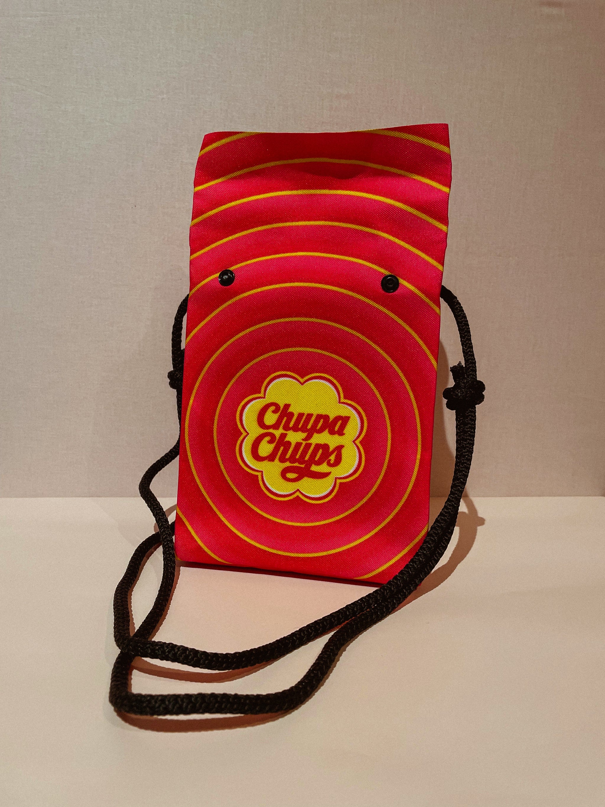 Dit felgekleurde Chupa Chups-tasje is een instant eye-catcher. Met zijn retro vibes, knallende rood-gele print en handige koordjes neem je moeiteloos je essentials mee. Perfect voor iedereen die haar outfit graag een lekkere dosis fun geeft!